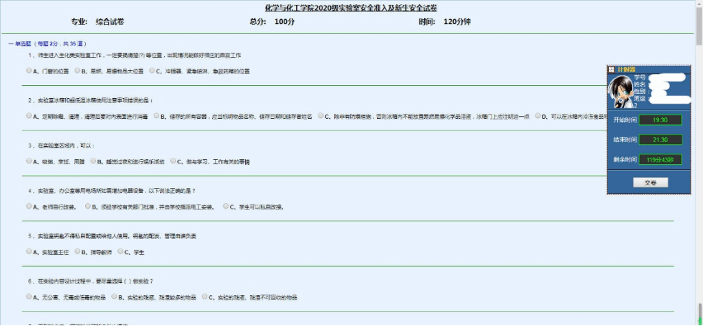 1.试卷名称:365上市集团官网(所有专业)实验室安全准入及新生安全试卷;