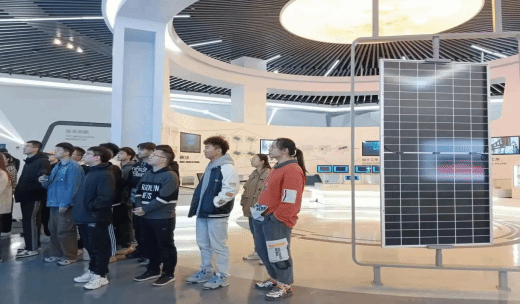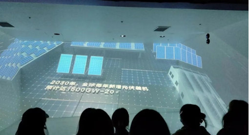 在企业人员的引领下,大家参观了展厅内的球幕演绎、光伏板块以及Hi-MO 5光伏组件,了解了地球持续升温对环境造成的影响,认识到当前应对温室效应最根本的方法就是削减温室气体排放,积极发展可再生能源。