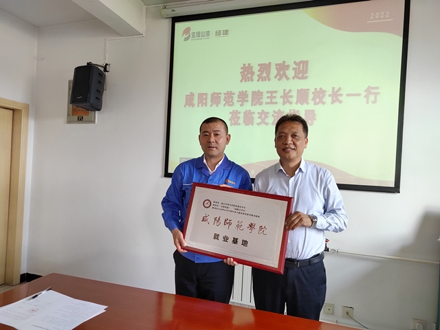 座谈会上,王长顺为陕西宝塔山油漆股份有限公司授牌,双方签订了就业基地协议书。该公司董事长李斌介绍了企业的整体发展历程、规模和人才需求等情况,并表达了希望加强校企深层次合作的意愿。王长顺详细介绍了公司基本情况,办学特色,人才培养模式等方面情况,从校企订单式培养、校际间科研合作、定制化团队培养等方面提出了合作思路和建议。