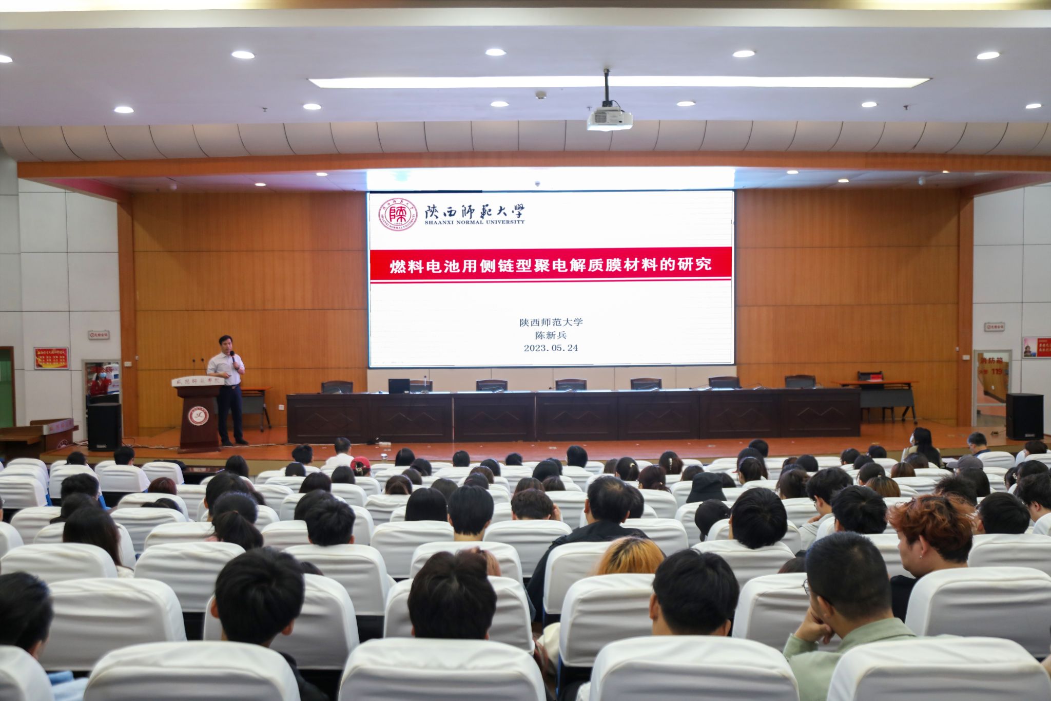报告会上,陈新兵教授以《燃料电池用侧链型聚电解质膜材料的研究》为题,围绕“聚合物电解质膜研究现状”“聚电解质膜的结构设计和制备”“刚性侧链型聚电解质膜的研究”““刚柔相济”侧链型聚电解质膜的研究”等4部分为我们做了精彩的报告,陈新兵教授的报告例证丰富,使我们获益匪浅。