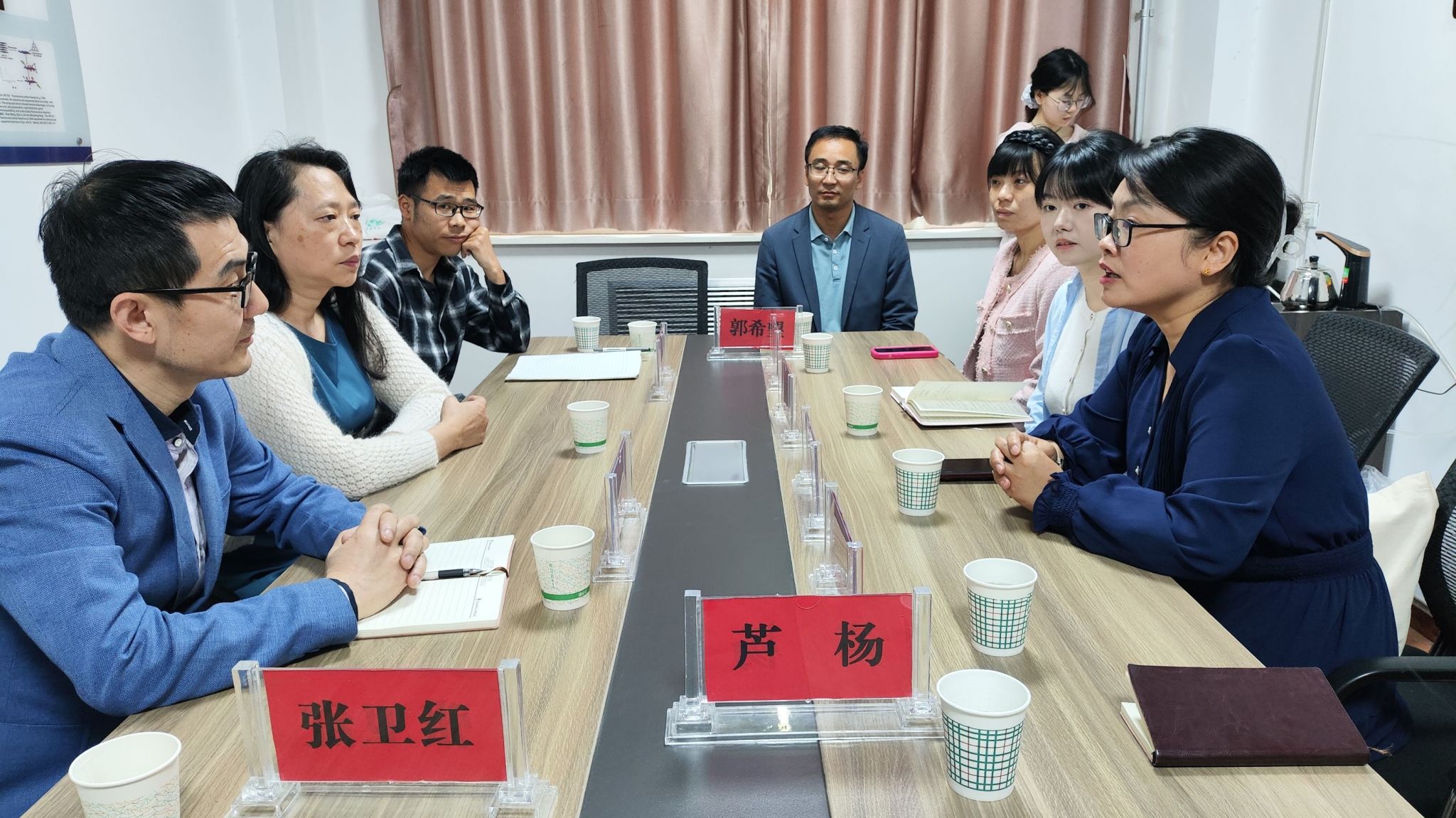 公司党政领导及教师代表与来宾进行了友好交流,经理郑敏燕对杜德新一行的到来表示热烈欢迎,介绍了公司的团队力量、专业设置、员工培养等情况;副经理尚永辉重点介绍了公司教师的学历情况以及研究方向,希望能充分利用本院教师学科门类广、科研实力强的优势在服务地方经济社会发展中作出更多成绩。杜德新希望后期持续加强馆校合作,共同推动文物保护工作再上新台阶。双方约定未来进一步拓宽交流渠道,在文物本体保护、土遗址病虫害治理、病害监测等领域开展合作。