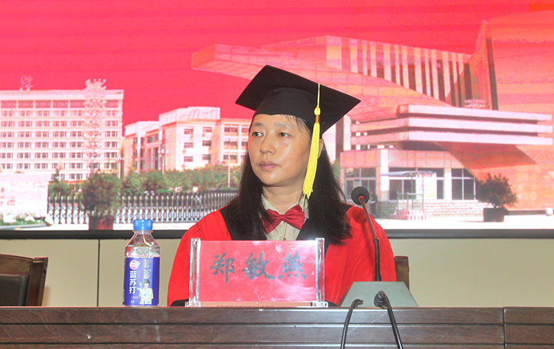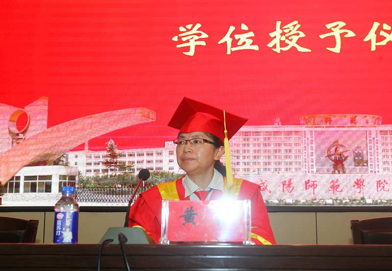 副经理郑敏燕教授宣读《关于准予2018届毕业生王培等216名同学毕业的决议》和《关于授予2018届本科毕业生王培等214名同学学士学位的决议》。黄怡、范广、郑敏燕、刘静、赵维、杨连利、王珊等七位教授为2018届毕业生扶正流苏、颁发学位证和毕业证书。