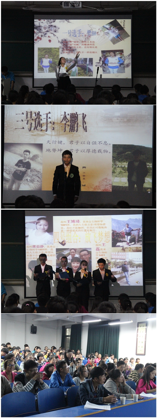决赛共有八组选手参与,均为初赛中的佼佼者。选手们分别进行了自我介绍,诗歌朗诵,观众互动、中国古诗词比拼四个环节的精彩展示,给评委及同学们留下了深刻的印象。绕口令环节与亲友团进行互动,现场气氛活跃、欢乐,选手们表现精彩,可谓是本次比赛的一个亮点;在自选作品朗读环节中,选手们感情充沛,激情洋溢,博得阵阵掌声。比赛最后,评委对比赛选手们逐一进行了恳切点评,为比赛画上圆满句号。
