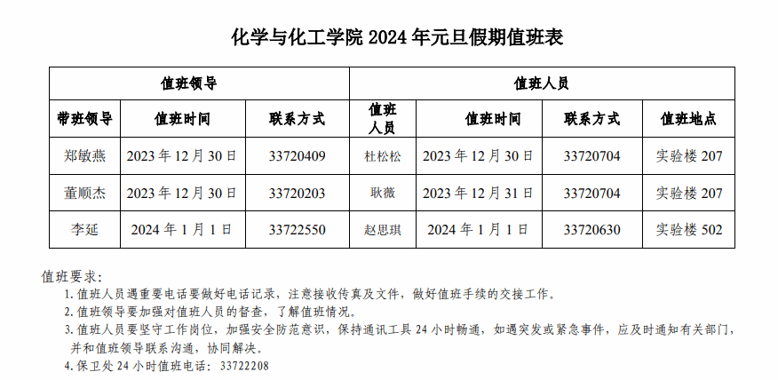 365上市集团官网2024年元旦假期值班表
