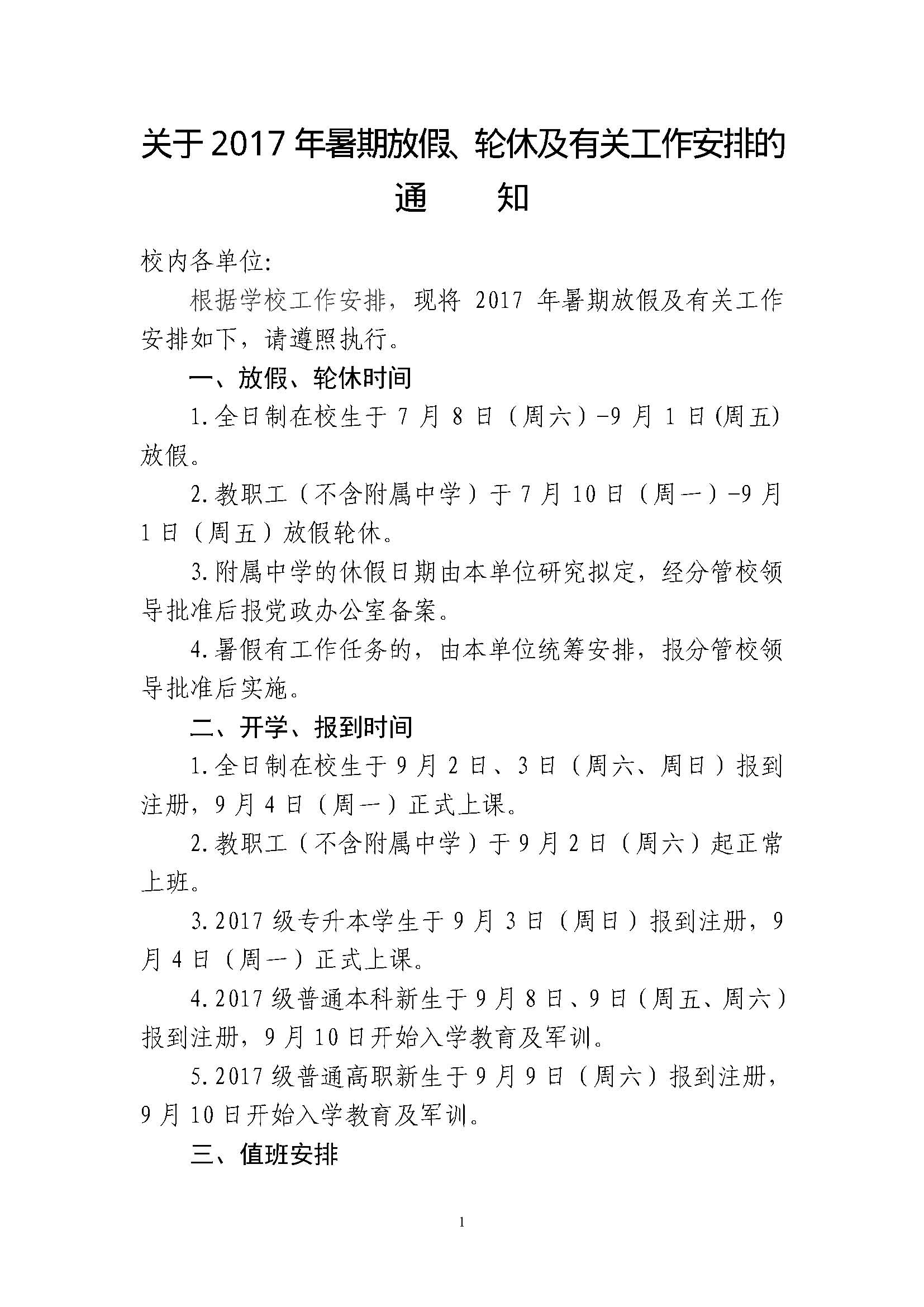 关于2017年暑期放假、轮休及有关工作安排的通知